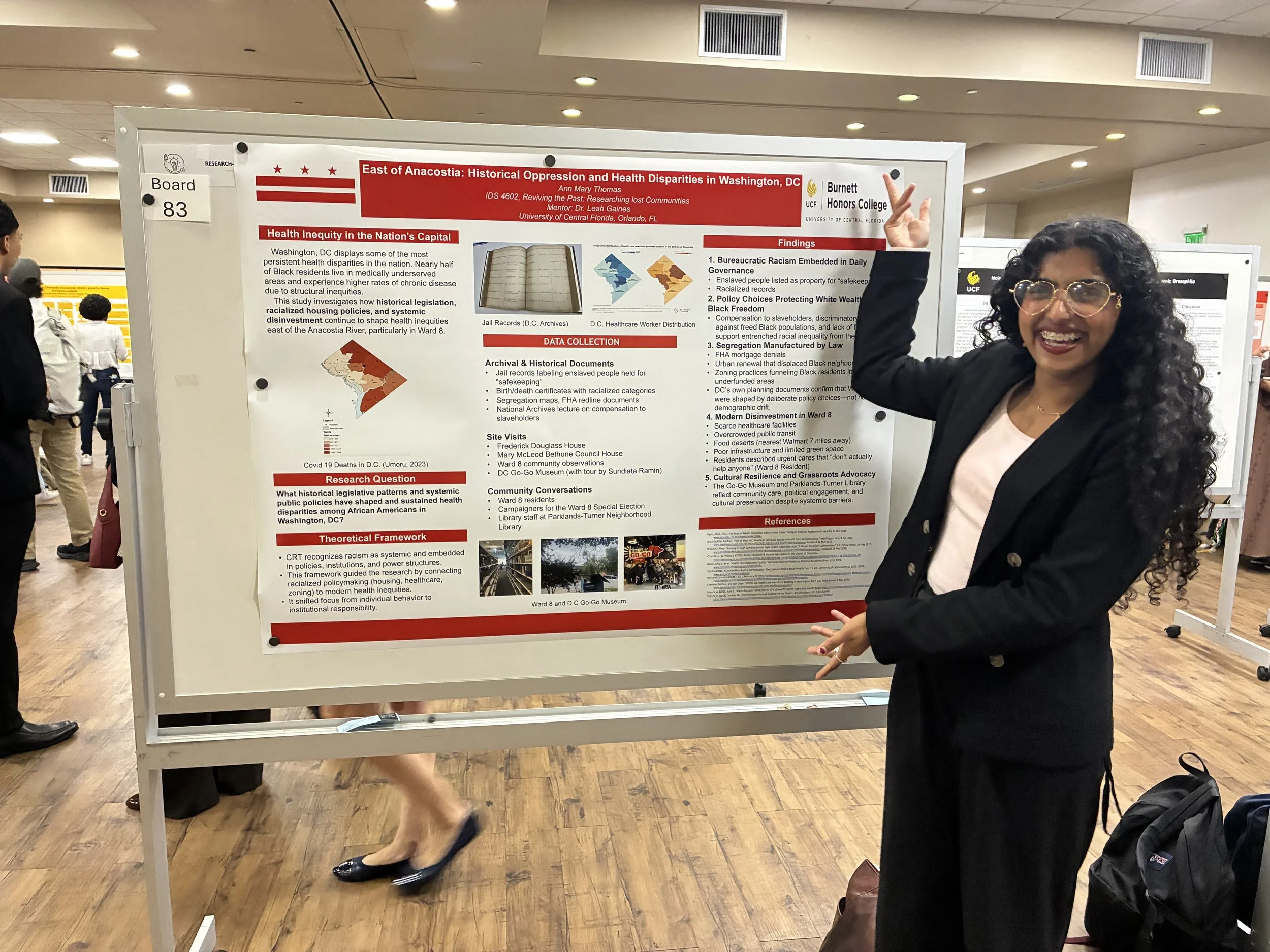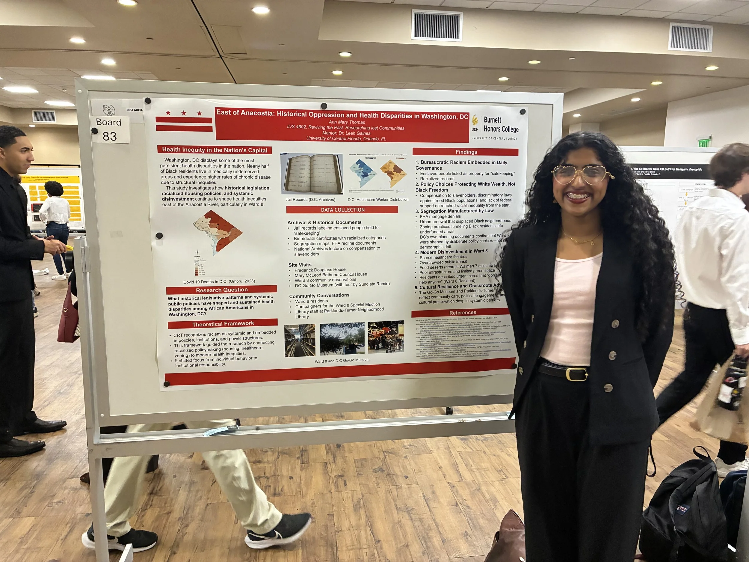 Dr. Gaines has acted as a chair for multiple undergraduate honors theses and individual research projects. To the right and below, two of her honors students present their projects at two undergraduate research symposiums and a thesis defense. Also, below is a student who presented their research collected during Dr. Gaines’ study-away course. All of these students have won awards for their work.